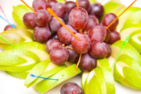 Fruit board with apples, red and green grapes