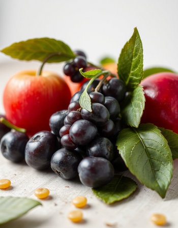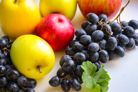 organic purple grapes and apple