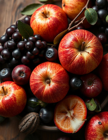 Autumn nature concept. Fall fruit on wood