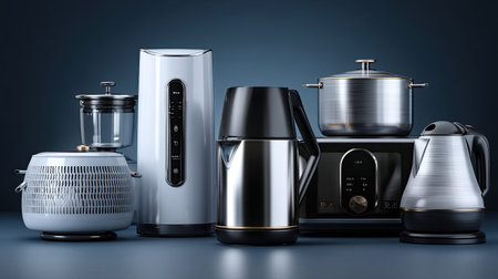 A stunning collection of modern kitchen appliances displayed together, showcasing their sleek designs and advanced functionalities in a stylish dark setting.