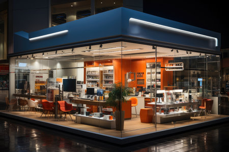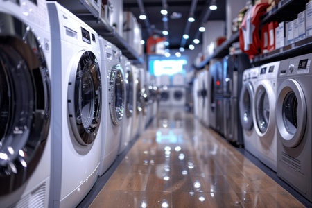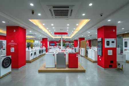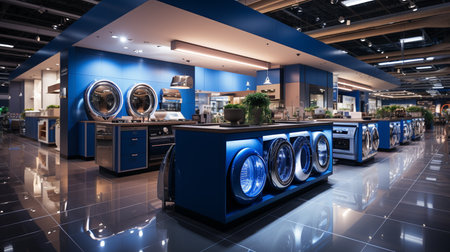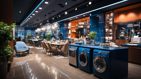 Generative AI : Interior of electronics store with various appliances arranged for sale