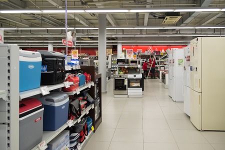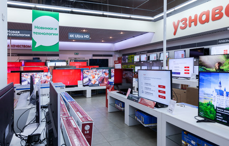 Moscow, Russia - February 02. 2016.Interior of Eldorado is large chain stores selling electronics and household appliances