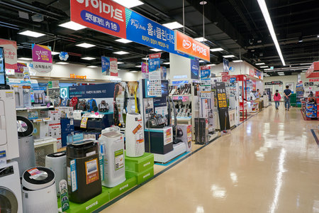 BUSAN, SOUTH KOREA - MAY 25, 2017: inside a Lotte Mart in Busan. Lotte Mart is an east Asian hypermarket that sells a variety of groceries, clothing, toys, electronics, and other goods.