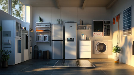 Solar power system components in a home utility room, representing energy independence.