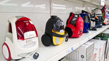 MELAKA, MALAYSIA - April 13, 2018 : Assorted brand and type of vacuum on shelf rack display in the Tesco store.