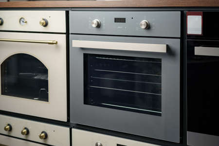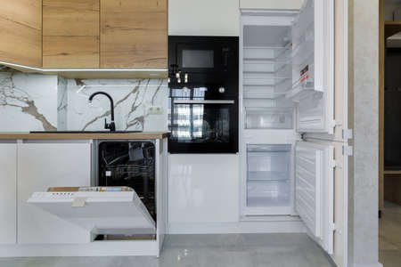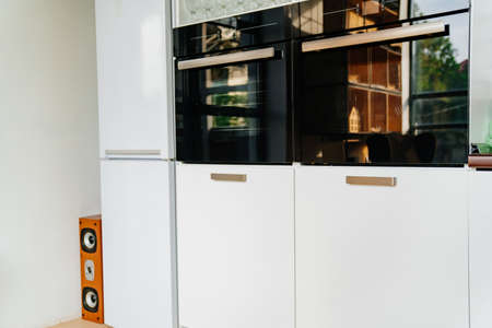 built-in appliances, white kitchen cupboard. furniture for interior of house