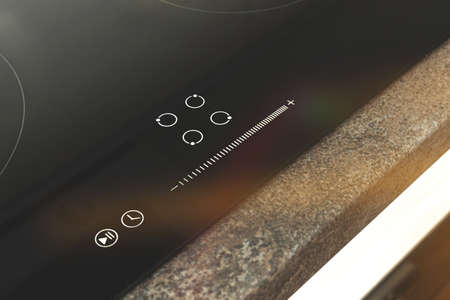 New electric stove with induction cooker cooktop in kitchen, closeup view photo