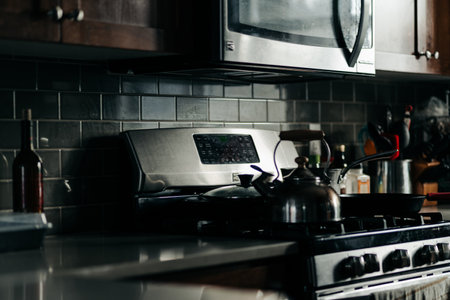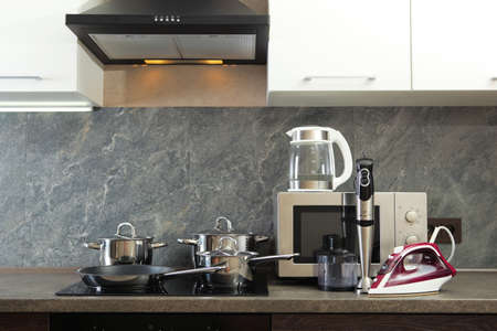 Close-up Of Home Appliance Arranged On Kitchen Worktop