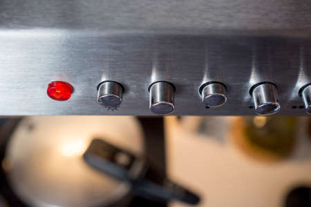 Kitchen extractor buttons with glass-ceramic hob with pan on background