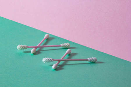 Multicolored Reusable Cosmetic Silicone Cotton Swabs. Zero waste concept.