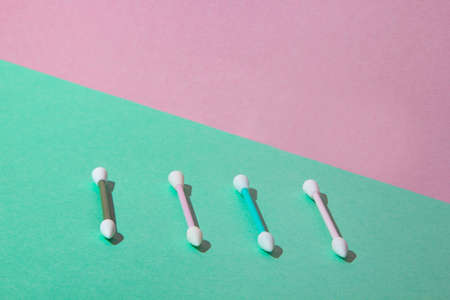 Multicolored Reusable Cosmetic Silicone Cotton Swabs. Copy space