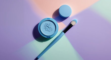 AI Generated. Blue Cosmetic Powder and Brush on Colorful Background