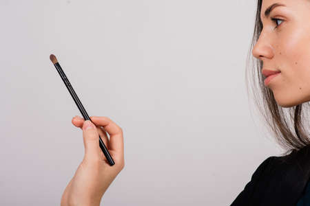 Makeup artist tools. Brushes for make-up from natural white nap in a beautiful frame.