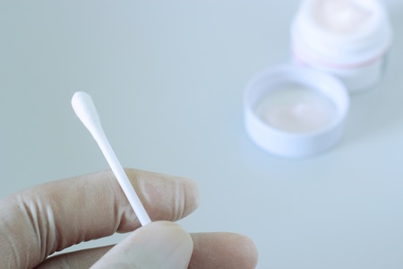 cotton bud with blur of cosmetic cream treatment concept, vintage style, soft focus