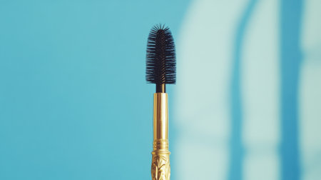 Stunning close-up of a mascara wand showcasing intricate brush design against a bold blue background, perfect for cosmetic photography and beauty-focused content.