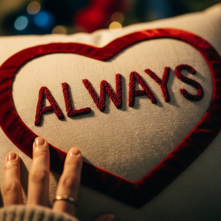 A woman's hand holds a heart with the word always