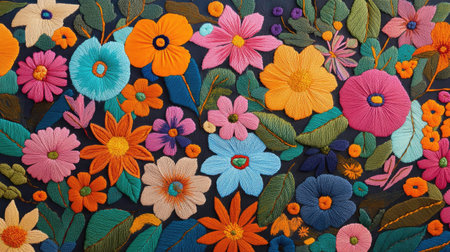 Explore vibrant floral embroidery patterns showcasing handcrafted artistry and texture