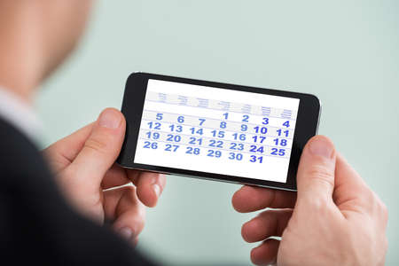 Close-up Of A Businessman With Cellphone Looking At Calendar