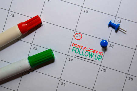 Dont't Forget to Follow Up text on white calendar background. Reminder or schedule concept