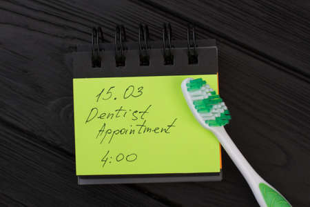 Dental hygiene appointment reminder. Message with date and toothbrush to remind dentist appointment.