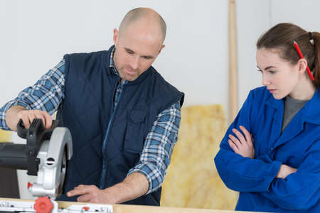 carpenter with apprentice in training period