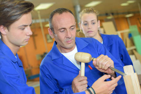 Carpenter teaching in woodwork class