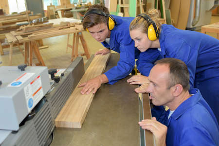 carpenter trainees learning with boss