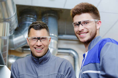 industrial trainer posing with apprentice with pride