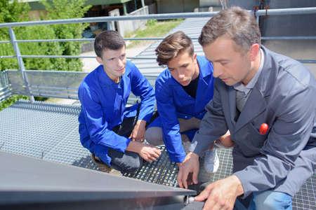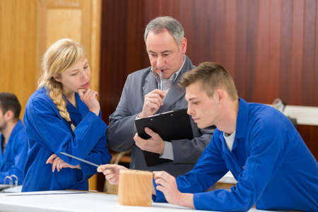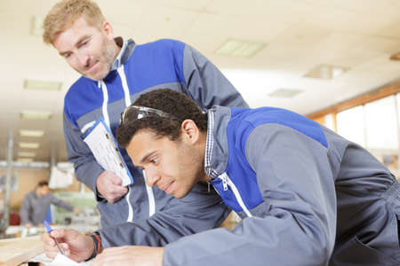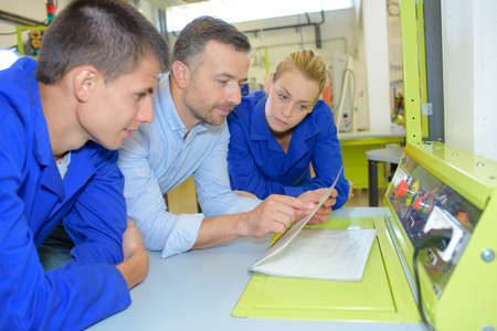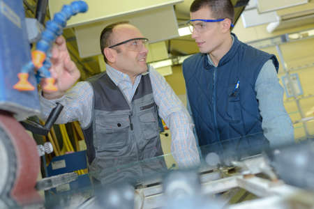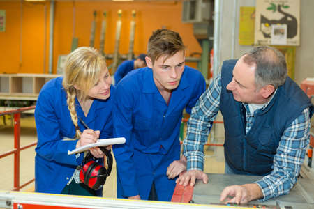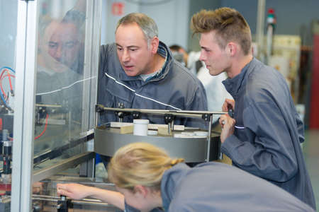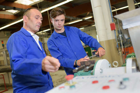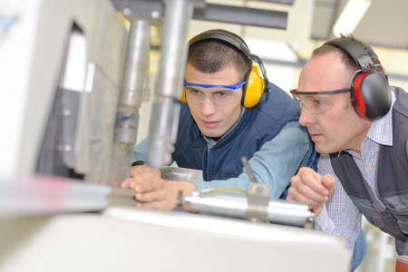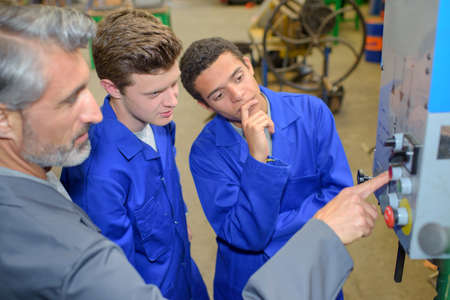 apprentices learning to use machine