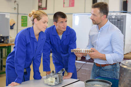 Students looking at component of domestic appliance