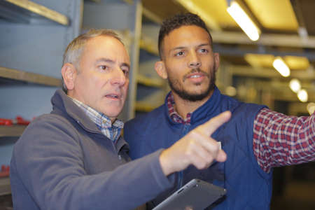 manager and apprentice in factory storeroom