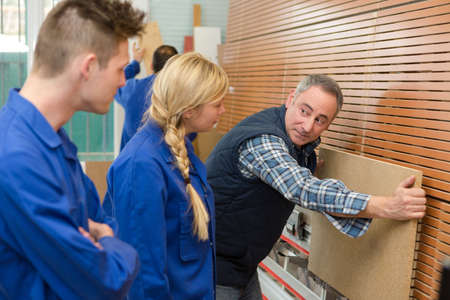 portrait of young apprentices in carpentry school