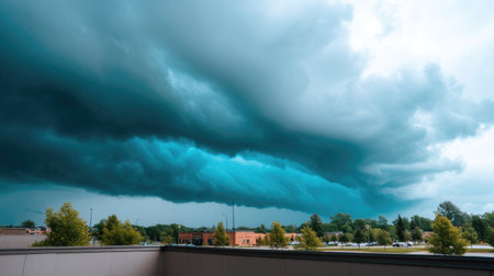 This striking image captures a dramatic cloud formation looming over an urban landscape, highlighting the beauty and power of nature as an impending storm approaches.