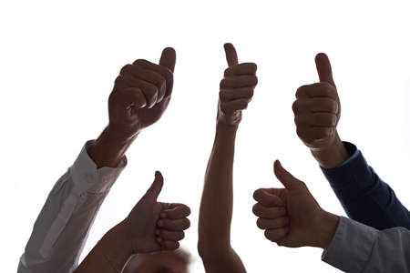 Thats a job well done. Cropped shot of a group of people showing thumbs up against a white background.