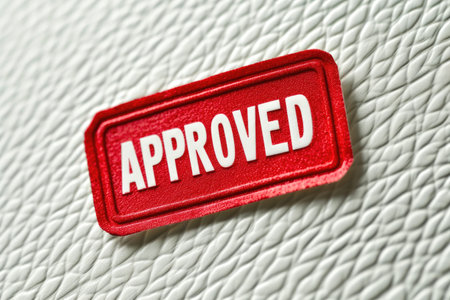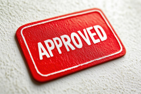 Bold Red “APPROVED†Graphic on Radiant White Background