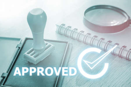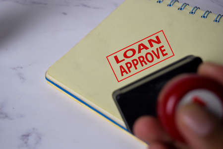 Document that has been stamped printed on Approved in large diagonal red text and rubber stamp, Business credit concept