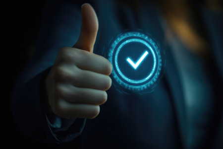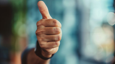 A hand confidently shows a thumbs up, radiating positivity and support in a bright setting.