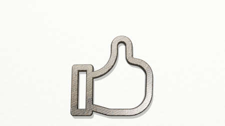 LIKE on the wall. 3D illustration of metallic sculpture over a white background with mild texture