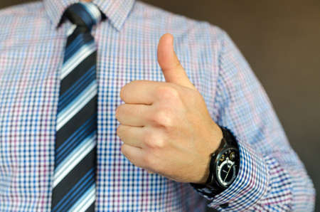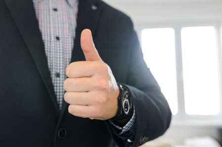 Businessman is lifting thumbs To display indescribably and agree to terms in business.