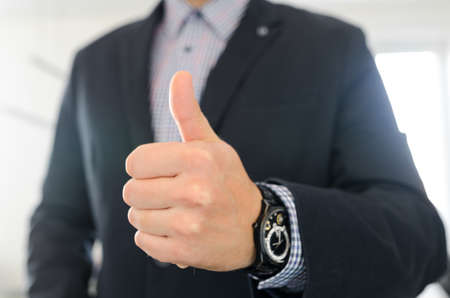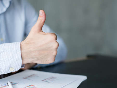 Thumb up gesture as a symbol of approval or success in business