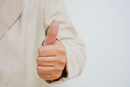 Thumb up hand sign on white background