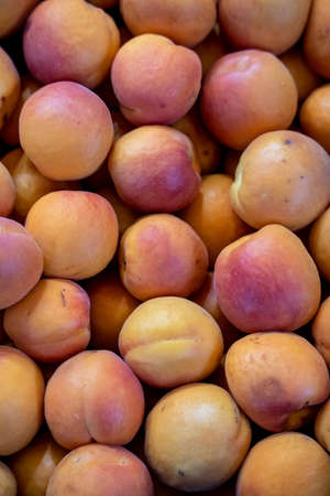 Fresh ripe fruit apricots are red yellow in color. Apricots as a background for your design