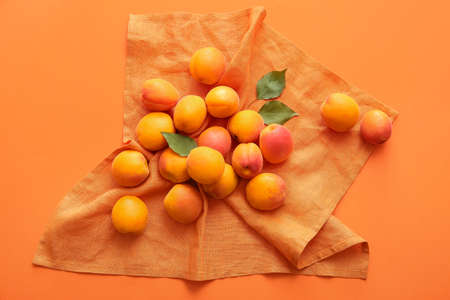 Tasty apricots on color background