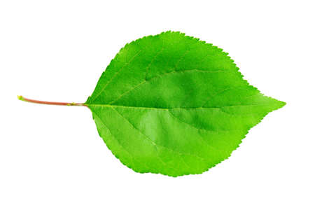 The green leaf of an apple tree taken in close-up shows the texture of the leaf.