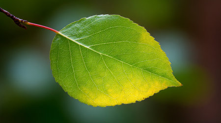 Detailed Green Leaf Showing Veins and Yellowing Edges with Blurry Background