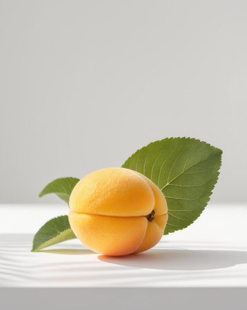 AI Generated. A Single Ripe Yellow Apricot with a Green Leaf