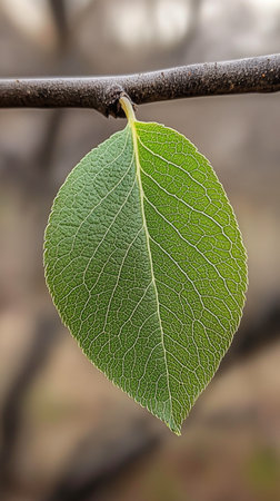 Detailed Green Leaf Hanging from a Branch with Soft Focus Background