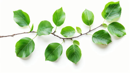 Close-Up of a Fresh Green Leaf Showcasing Intricate Veins on a Clean White Background, Ideal for Nature and Environmental Themes