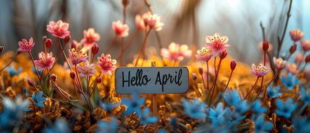 Springtime Hello April concept with beautiful pink flowers