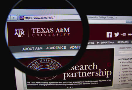 LISBON, PORTUGAL - FEBRUARY 21, 2014: Photo of the Texas A&M University homepage on a monitor screen through a magnifying glass.